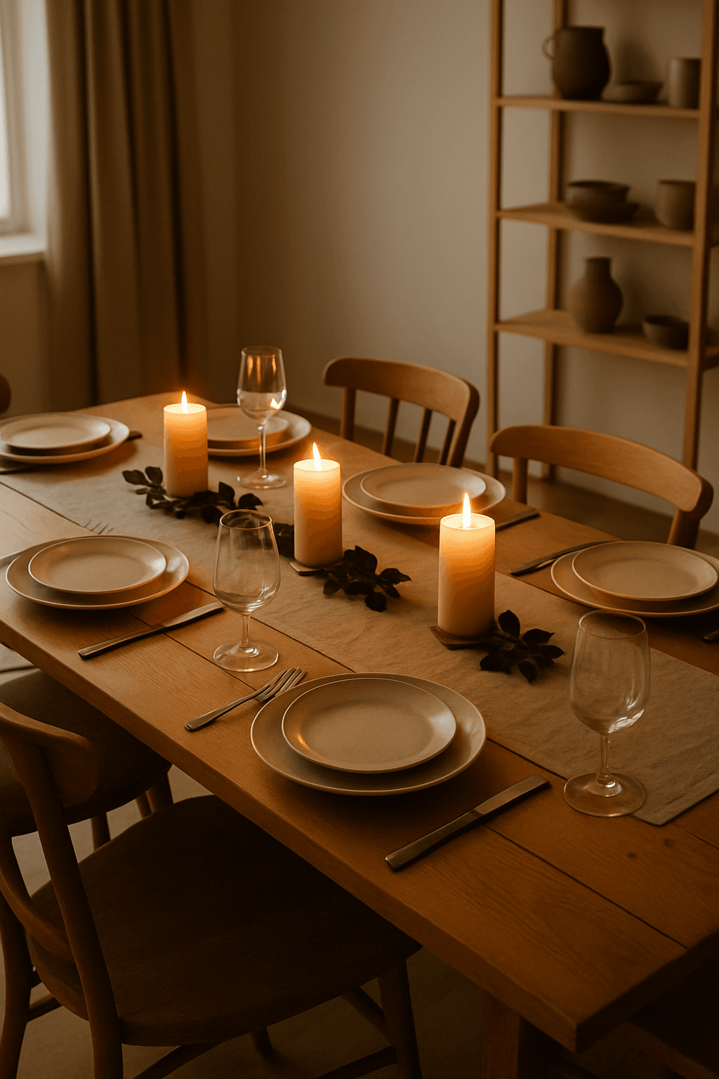 Iarna și Toamna Târzie: Este timpul intimității și al "cuibăririi". Folosim farfurii grele de ceramică, în nuanțe pământii, și lumânări mari, robuste. Tacâmurile din cupru sau alamă reflectă lumina caldă a focului. Este momentul supelor fierbinți și al vinului roșu.