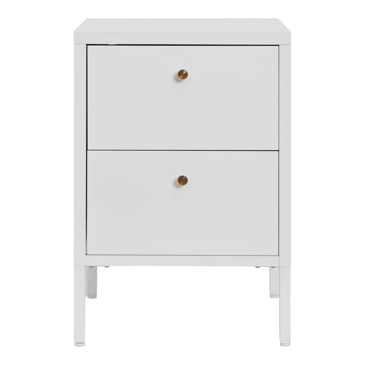 O comodă elegantă din oțel alb, cu linii pure scandinave, perfectă pentru spații moderne și organizate. Două sertare spațioase oferă depozitare discretă pentru obiectele tale preferate.