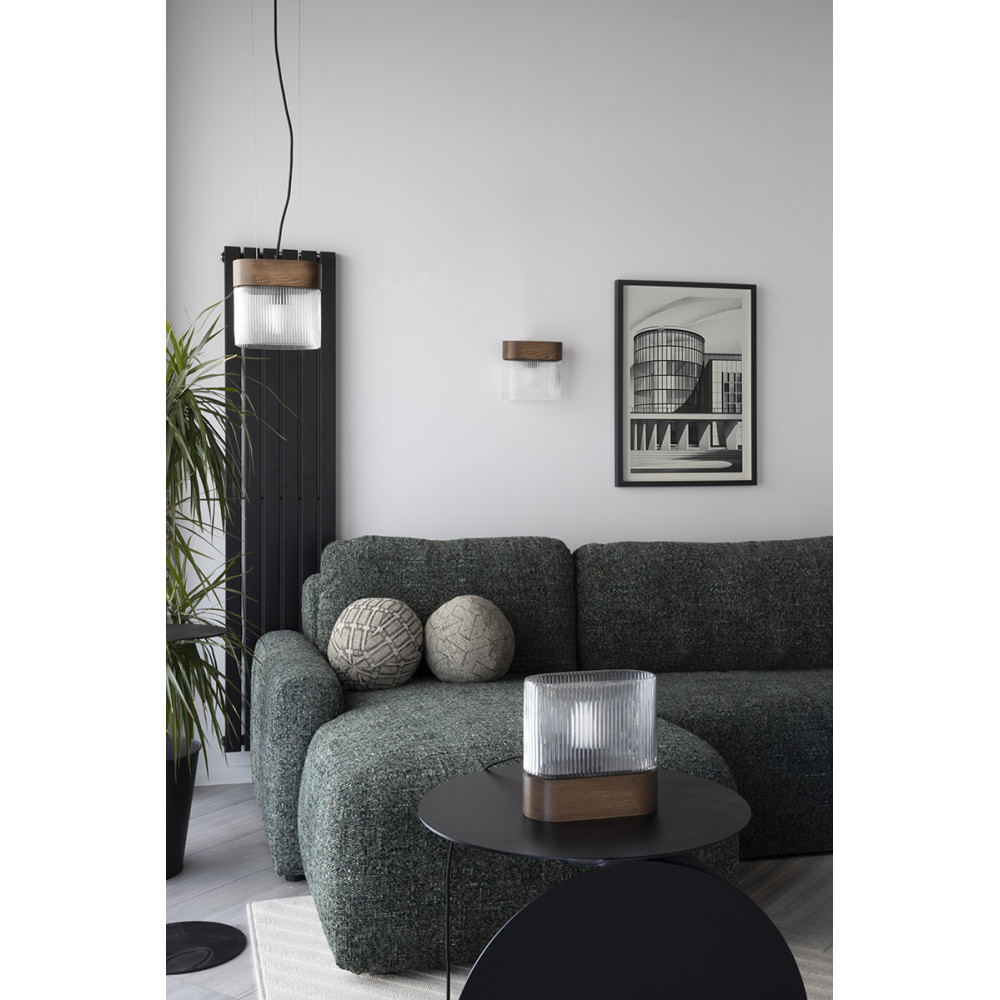 lemn de frasin / sticlă canelată transparentă |