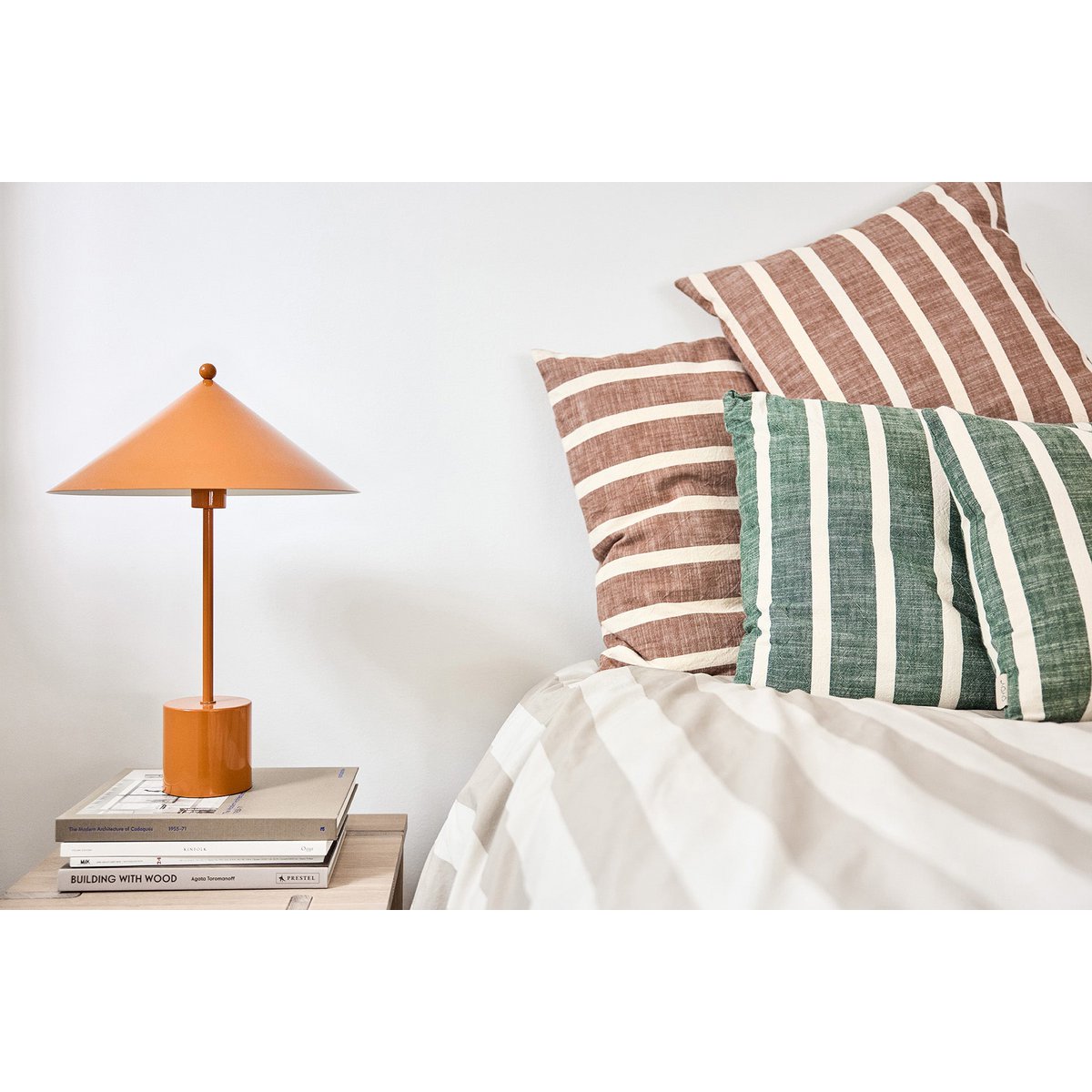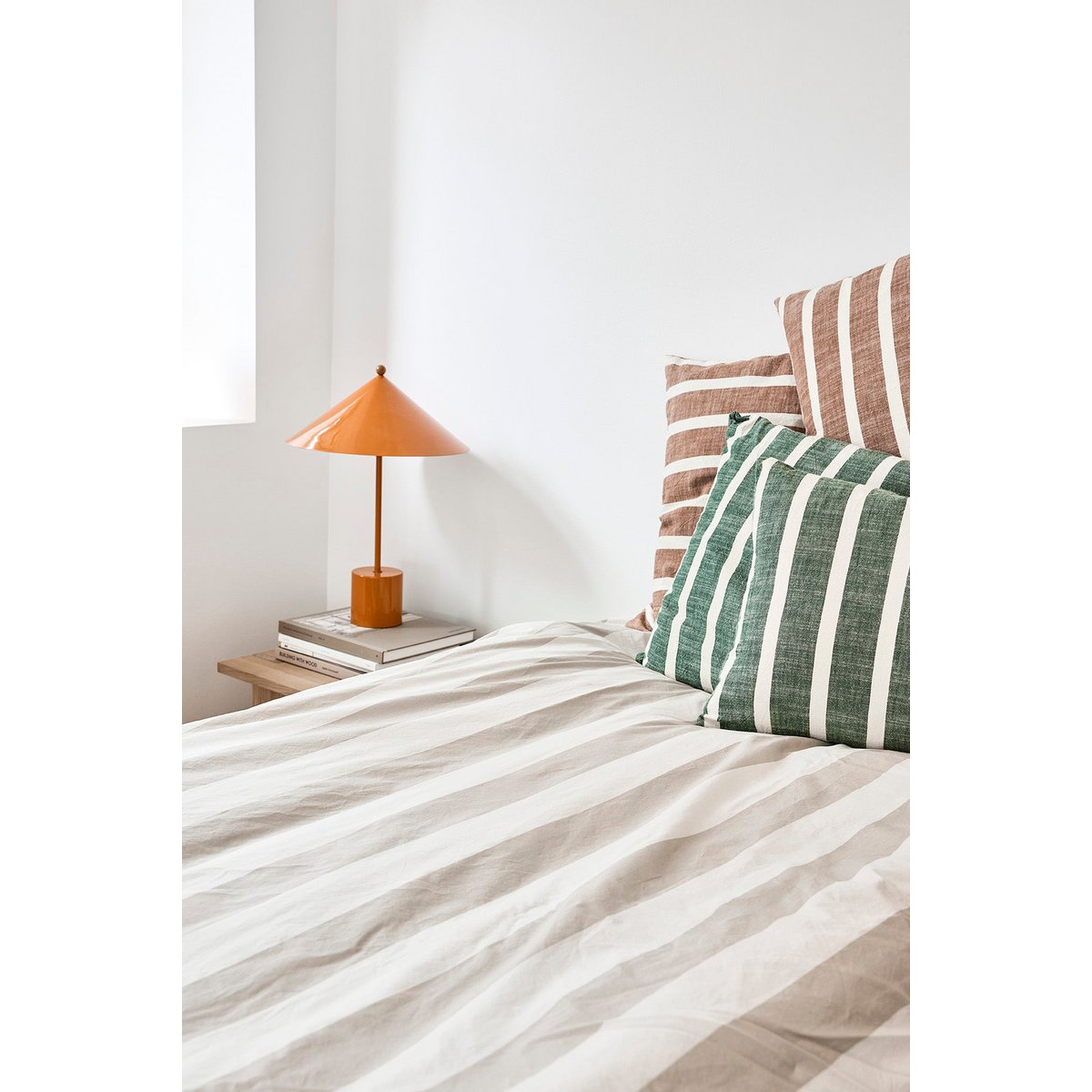 O husă elegantă pentru perne, cu model în dungi și tonuri calde, naturale, ce aduce un plus de rafinament și confort în orice colț al casei tale.