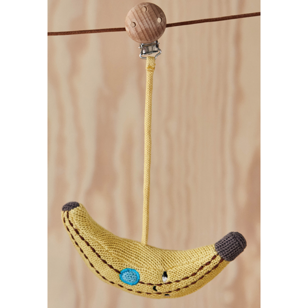 Cu un design jucăuș și materiale naturale atent selecționate, această banană decorativă nu este doar un simplu accesoriu – este o mică bucurie care însoțește fiecare aventură în aer liber. Clema practică permite atașarea ușoară la cărucior, pătuț sau geantă, oferind bebelușului tău un punct de interes vesel și colorat.