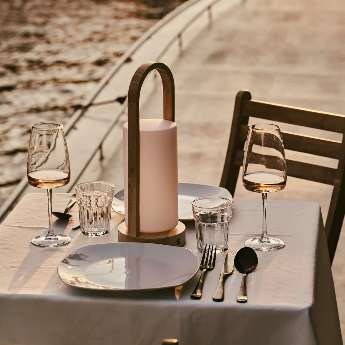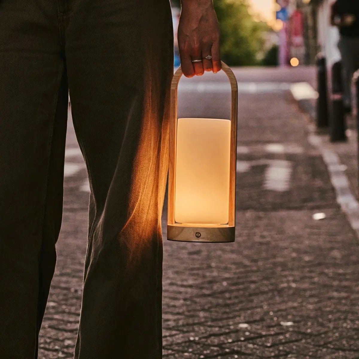 Lemn cald și sticlă mată într-o formă subțire și înaltă. O lampă wireless care nu ocupă mult spațiu dar are prezență. Baterie de 4000 mAh cu autonomie până la 80 ore, trei tonuri de lumină. Elegantă și simplă.