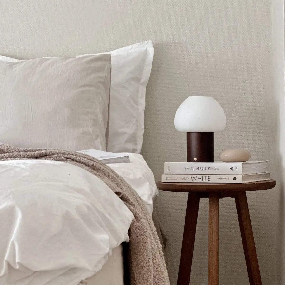 Fynn este o lampă din lemn cu abajur din sticlă mată, wireless și reîncărcabilă prin USB-C. Designul combină materialele naturale într-o formă simplă și compactă. O poți muta oriunde – pe noptieră, pe birou, pe o măsuță în living. Fără prize, fără cabluri care să te încurce.