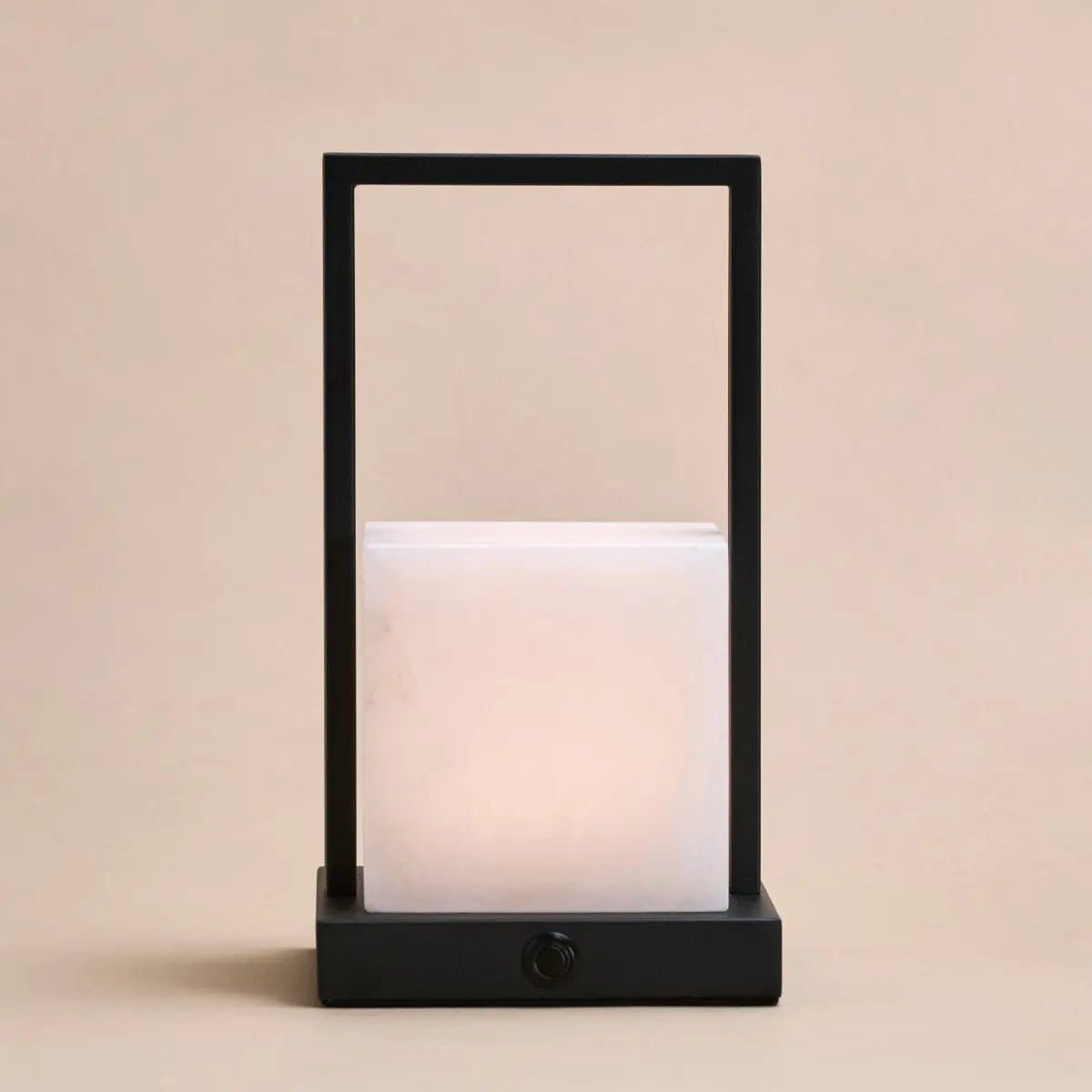 Nola e făcută din alabastru natural cu bază din metal negru mat. Wireless, reîncărcabilă prin USB-C. Înălțimea se reglează – o poți adapta la înălțimea mesei, noptieră sau birou.