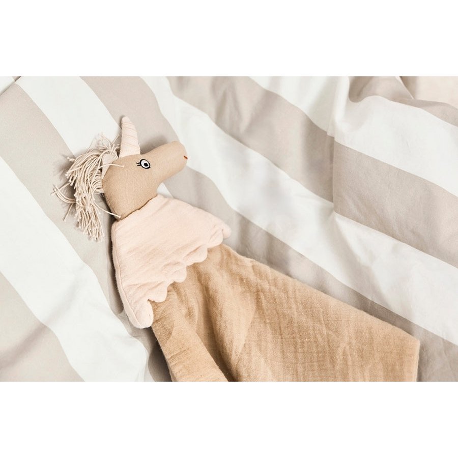 O jucărie-păturică moale în formă de unicorn, special creată pentru momentele de alint și confort ale bebelușului tău. Cu detalii adorabile și colțuri înnodate pentru mânuțe micuțe.