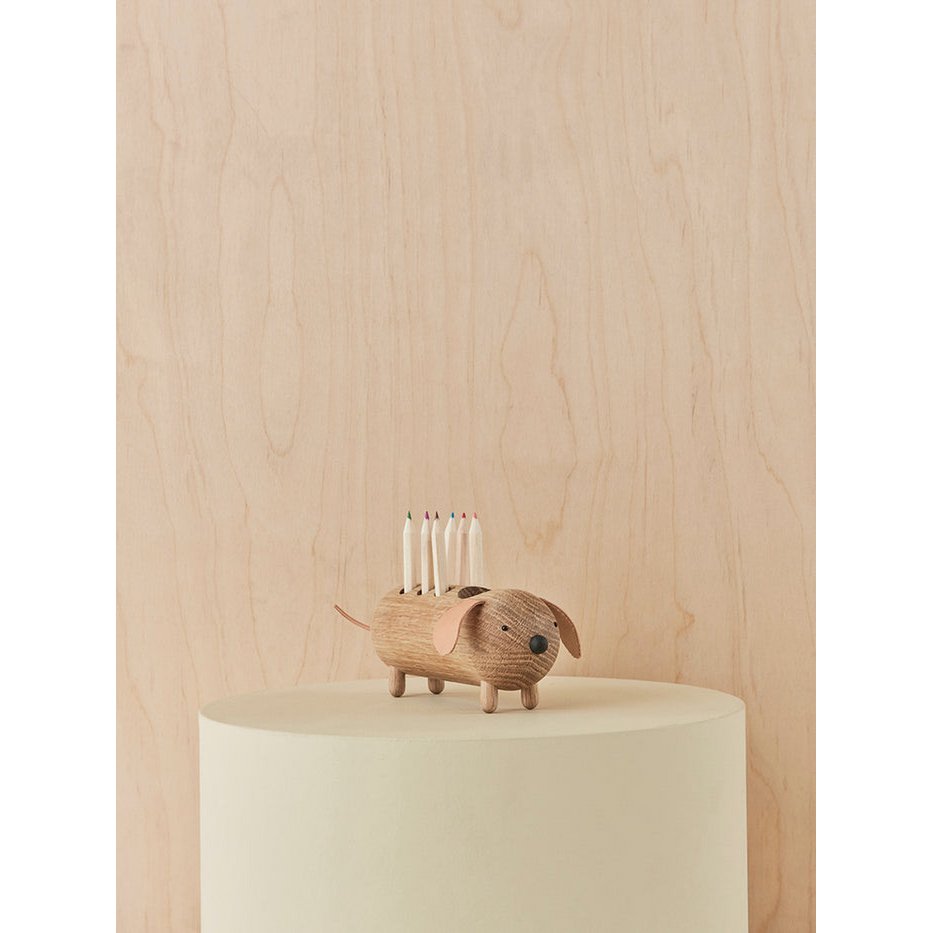 Suport de creioane Eddie – Cățelul din lemn de stejar