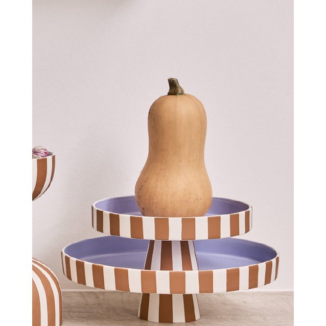 Perfect dimensionată pentru a servi gustări la întâlnirile cu prietenii, pentru a organiza accesoriile pe masa de toaletă sau pentru a aduce micul dejun în pat într-o dimineață leneșă. Fiecare dungă este pictată manual, făcând din fiecare tavă o piesă unică, cu propria sa personalitate.