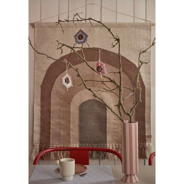 Într-o lume în care detaliile fac diferența, vaza Toppu se remarcă prin designul său grafic și elegant, aducând în casa ta o notă de rafinament scandinav. Silueta sa înaltă și zveltă, completată de combinația subtilă de culori caramel și roz, transformă acest obiect decorativ într-o piesă de rezistență care atrage privirea.