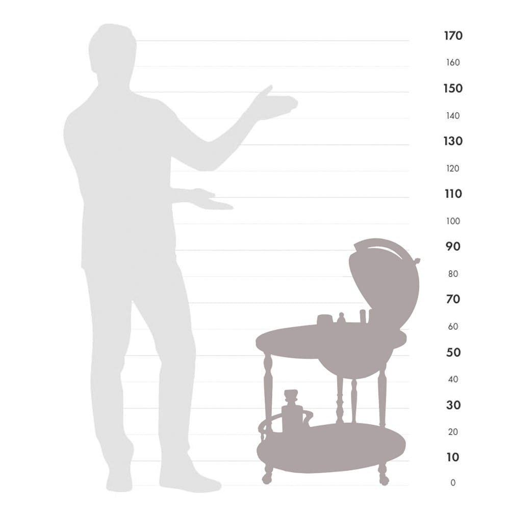 Tava superioară spațioasă și compartimentul generos din interiorul sferei îți oferă tot ce ai nevoie pentru a pregăti băuturile preferate: loc pentru carafe, pahare și sticlele tale de vin sau spirtoase. Baza solidă, decorată cu o roză a vânturilor realizată în acuarele naturale, completează perfect orice decor clasic sau tradițional.
